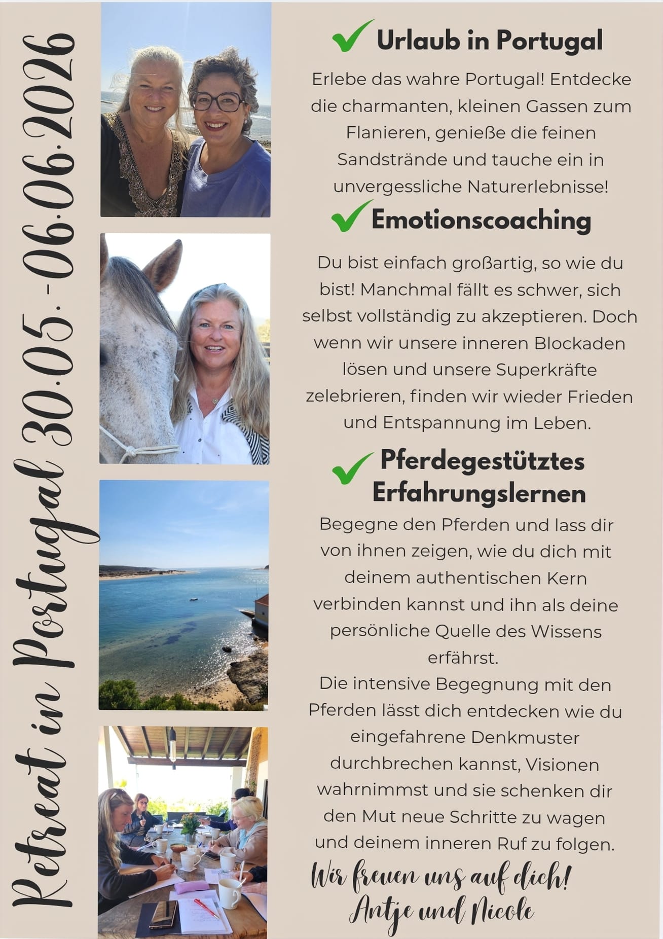 Horse-assisted experiential learning & emotion coaching & vacation in Portugal
